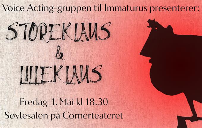 "Storeklaus og Lilleklaus" er et skyggeteater som forsøker å bringe til liv for et moderne publikum; et gammelt eventyr fra en kultur hvor skjeppemål, skomakere og mjød er hverdagslige referanser. Til å være et samfunn hvor folk går i kirken om søndagen og tror sterkt på både Himmelriket og Gamle-Erik, er det overraskende mye umoralsk som utspiller seg. Dette lukter drama! Kom, ta med deg en venn og din bestemor, og opplev H.C. Andersen slik du aldri har sett det før!